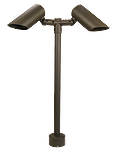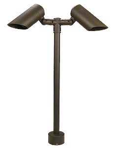 Precision machined aluminum LED staff lighting fixture available with dual 12V Integral Driver or 120-277V Remote Driver COB LED light engines. Modular industry standard components allow for simple field replacement and future upgrades. Wet or dry location capable and certified for landscape applications, the PA16 Dual Staff Light is perfect for all interior, exterior, commercial, retail, and hospitality path lighting or flood / accent uses.