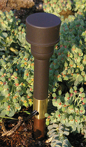 Machined C36000 brass stake with industry standard 1/2”-14 NPSM internal mounting threads. Angled point allows for easy installation in ground. Side wiring hole allows for easy wiring of fixture after installation.