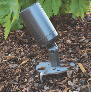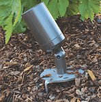 Stainless steel ground spike for ground mounted lighting applications. Can be used with low voltage lighting fixtures.